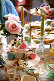 There is an attractive, timeless quality about going to tea where the calmness of a bygone era is re-created. Tea beckons us to enjoy quality time with friends and loved ones, and especially to rediscover the art of relaxed conservation. Along with the choice of teas, there are three distinct courses: savories (tiny sandwiches) first to blunt the appetite, then scones, and finally, sweet pastries.